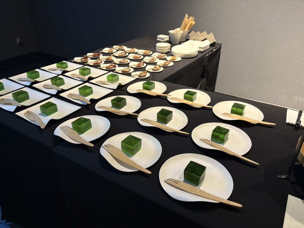 また、レセプションに招待された方々に振舞われた「おもてなし」がとても美味しく、小雨が降る中でまだ蒸し暑い中に差し出された水出し茶を含む数々の品で心が洗われました。中央区にある「万(よろず)」さんのご提供は素晴らしかったです。