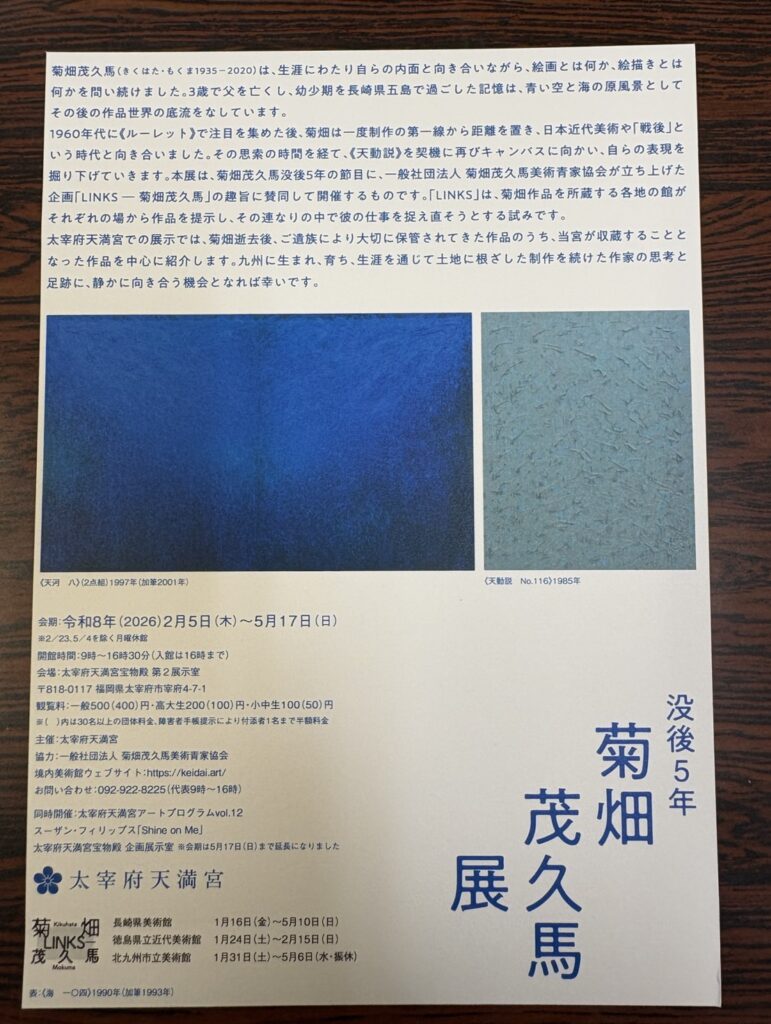 今回の「菊畑 茂久馬 展」はフライヤーの時点で興味を掻き立てる何かを感じて、太宰府天満宮に立ち寄った際に行ってみようと思った作品展でもありました